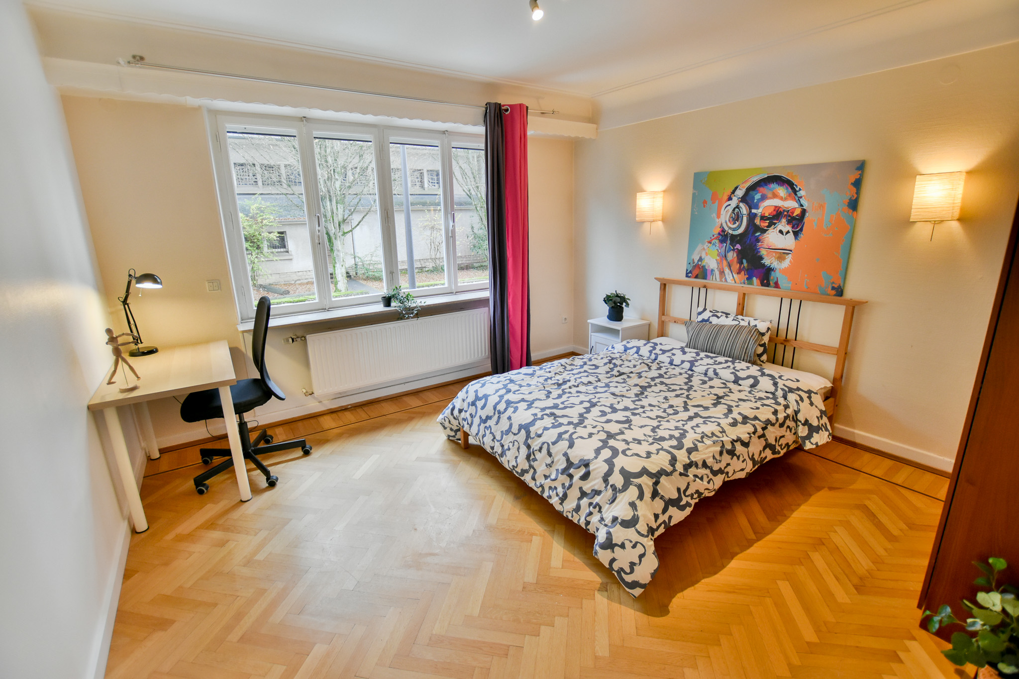 Located in the highly sought-after area of Belair, this super central room offers convenient access to bus routes directly linking to both the city center and the Gare train station, ensuring seamless commuting for residents. Situated within a prime locale, it enjoys proximity to supermarkets, enhancing everyday convenience. Furthermore, residents are within close reach of the Parc de Merl and the Parc municipal de Luxembourg, providing a harmonious balance between natural tranquility and urban accessibility. The house features a fully equipped kitchen, two bathrooms, and a charming garden.